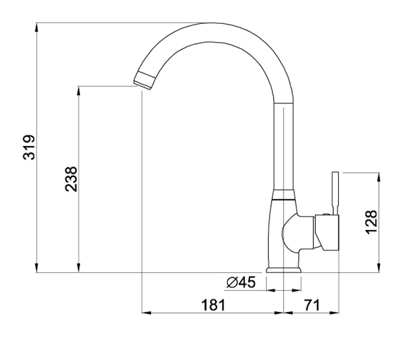 Dřezová páková baterie ELLECI C01 CADDY CROMO Otočná o 360 st. Rozměry: 319x181 mm Průměr: 35 mm Provedení: CHROM