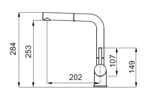 Dřezová páková baterie se sprchou ELLECI ALUNA PLUS INOX Otočná o 360 st. Rozměry: 284x202 mm Průměr: 35 mm Provedení: INOX