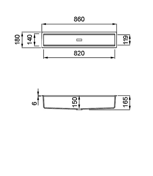 Výřez: 850 x 170 R5 (horní montáž) / 820 x 140 R4 (spodní montáž)