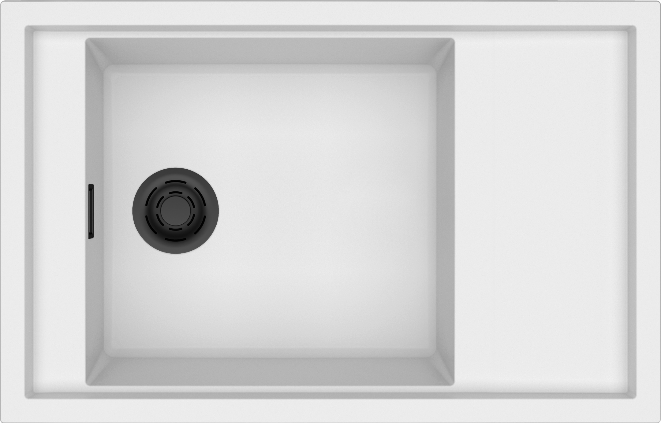 Integrovaná oblast pro příslušenství v odkapávači, vybavená předvrtanými otvory, které vám umožňují instalovat doplňky: excentrické ovládání odpadu, dřezovou baterii s vytahovací sprchou a dávkovač saponátu.