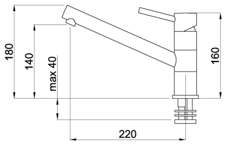 Dřezová páková baterie ELLECI TESEO G51 Otočná o 360 st. Rozměry: 234x182 mm Průměr: 35 mm Provedení: G51 (Avena)