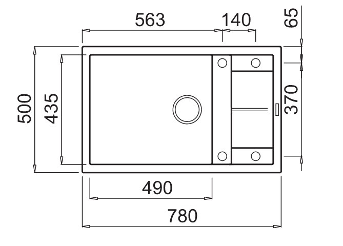 Integrovaná oblast pro příslušenství v odkapávači, vybavená předvrtanými otvory, které vám umožňují instalovat doplňky: excentrické ovládání odpadu, dřezovou baterii s vytahovací sprchou a dávkovač saponátu.