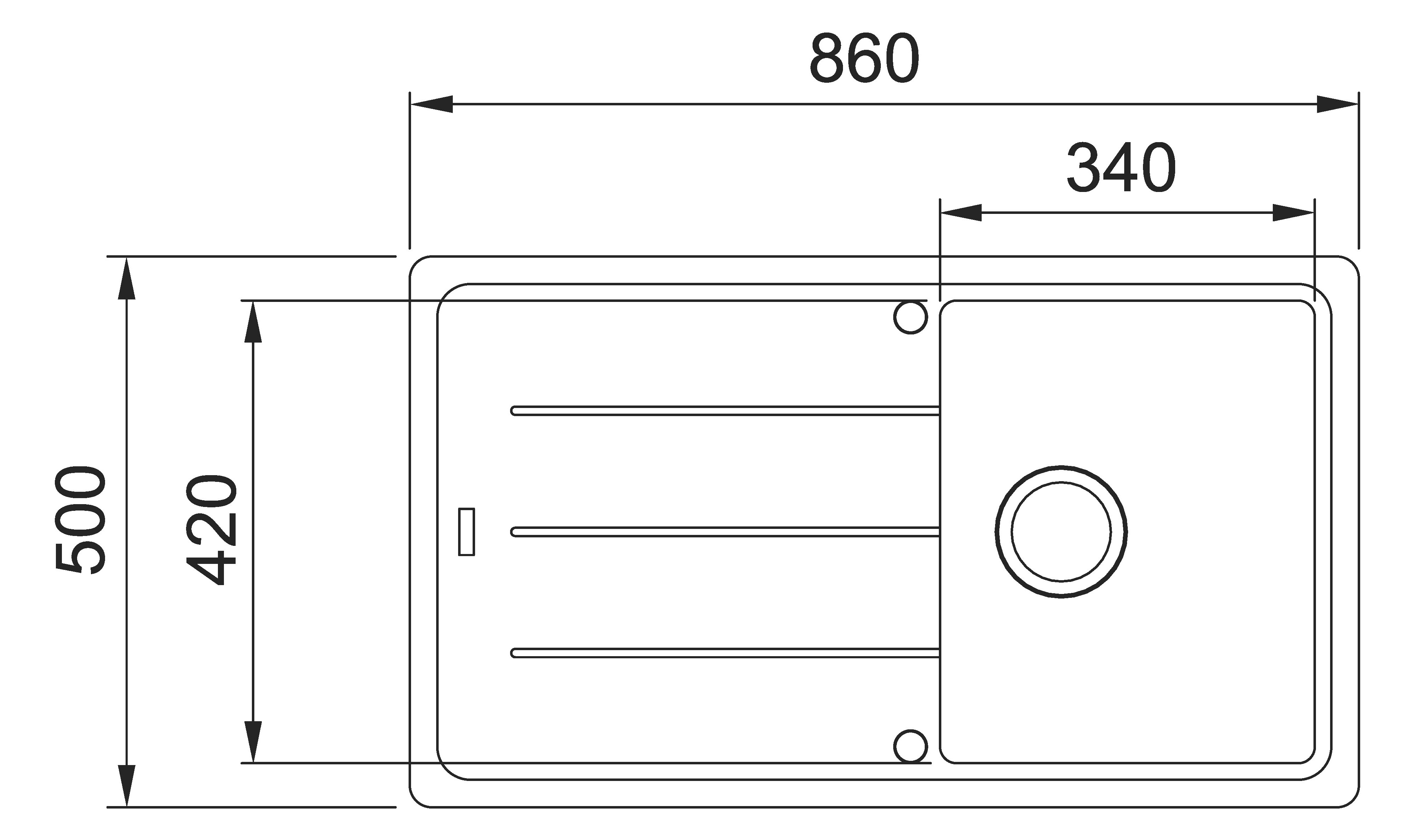 • Rozměr dřezu: 860 x 500 mm