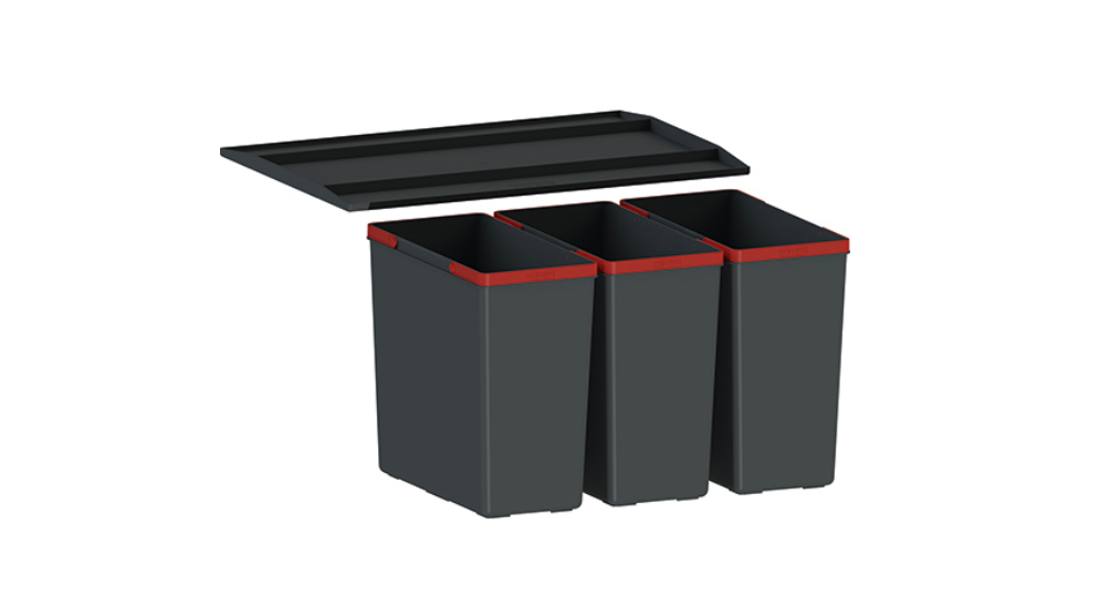 Min. montážní prostor: 564 × 378 × 343 mm Objem: 3 × 14,5 l Třídění odpadků: Třídruhové Barva: Černá 3 Koše (Výška košů 324 mm) Police nad košem v ceně koše Koš se vkládá do z ...Více informací