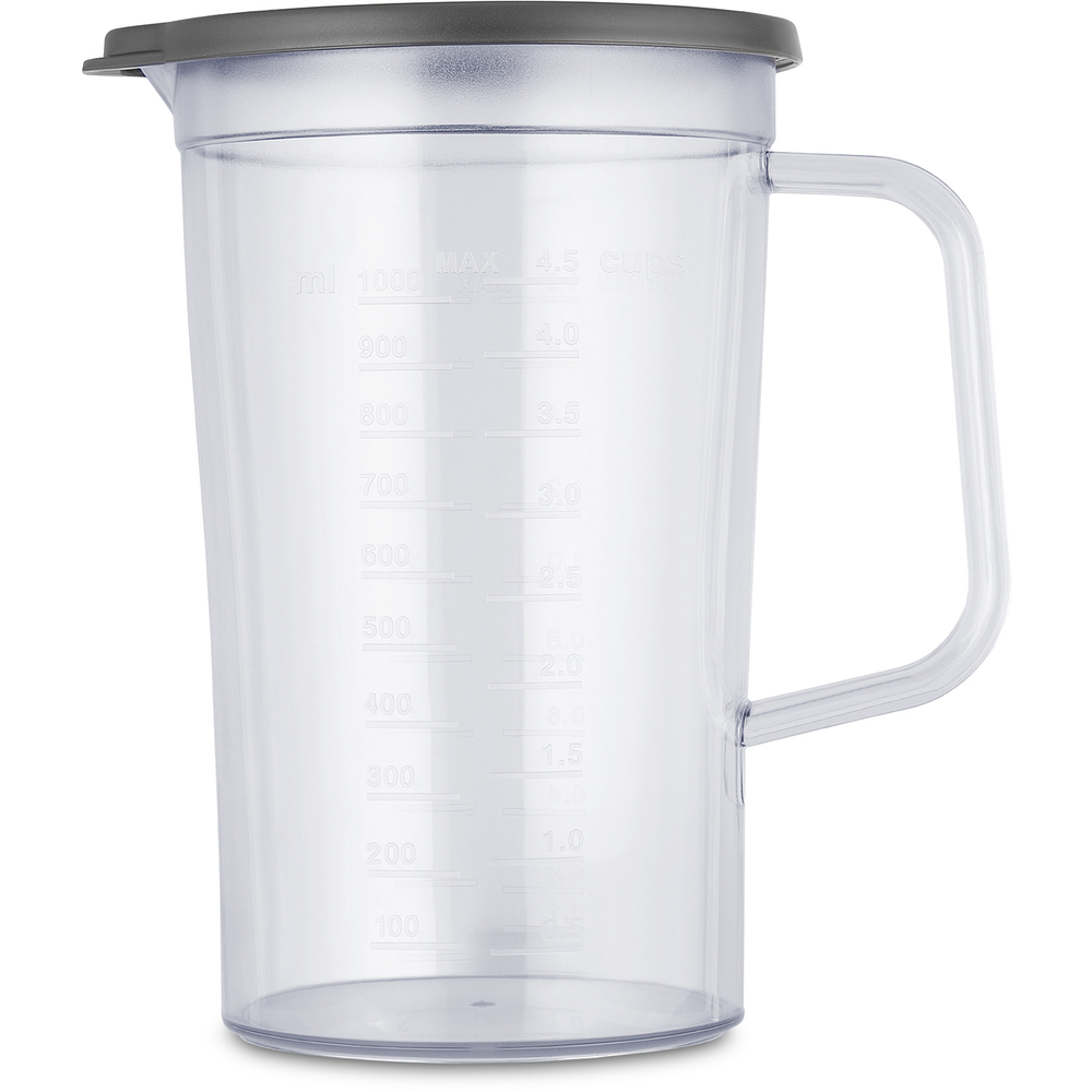 Naprosto nezbytnou součástí je pak mixovací nádoba o objemu 1 litr. Zejména pak oceníte odměrku s možností mililitrů nebo hrníčků.