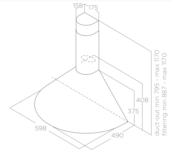 ELICA  TONDA  je komínový odsavač par (digestoř) je vyroben z nerezové oceli. Odsavač par (digestoř) nabízí velký výkon od 265-355 m3/h a nízkou hlučností 60-67 db(A).