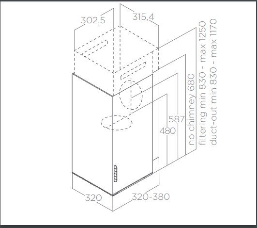 Odsavač par (digestoř) ELICA HAIKU je možné doplnit o montážní přípravek, který umožní plynule nastavit hloubku odsavače od 32 cm do 38 cm.