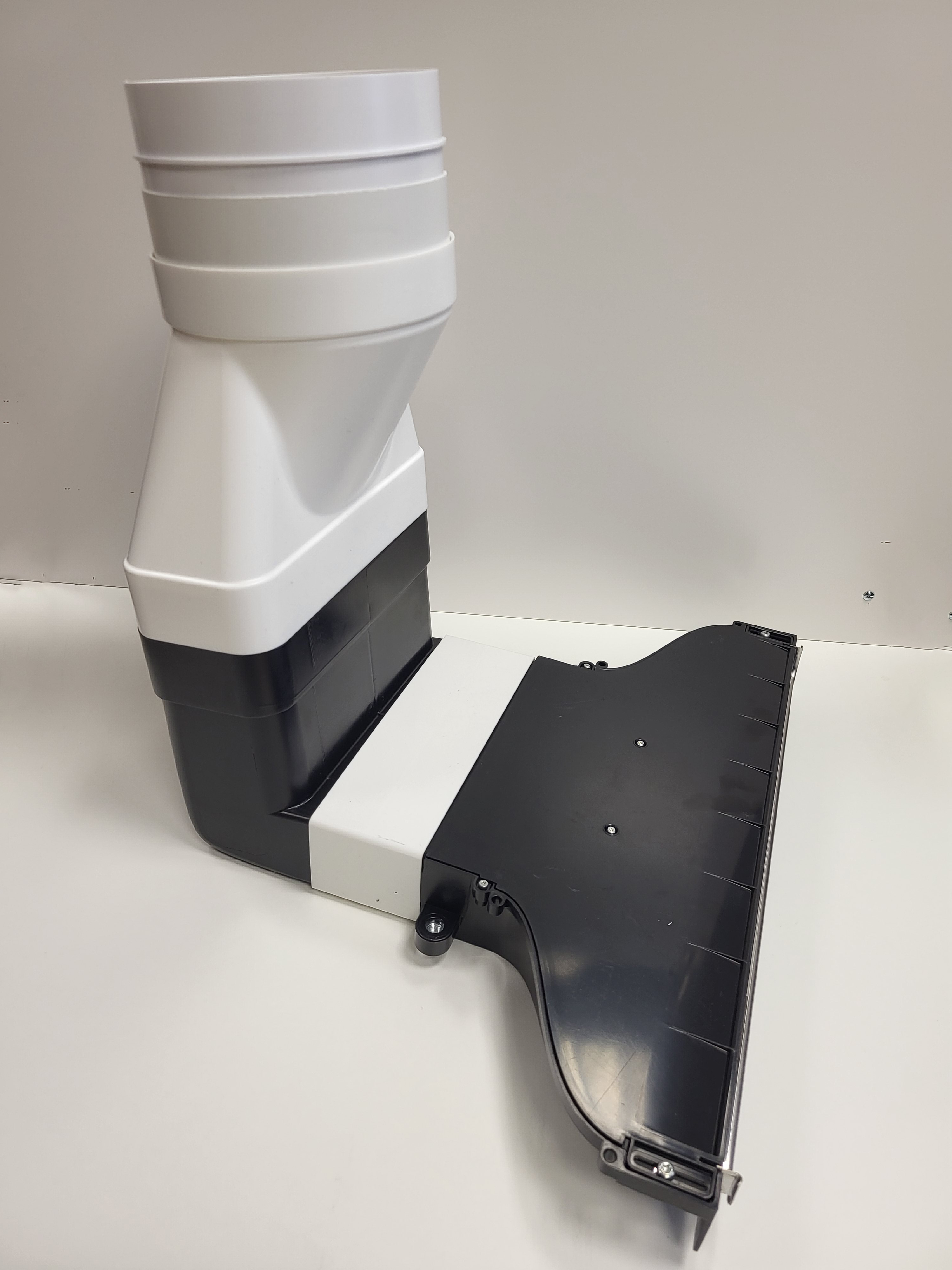 Difuzér s plochým kolenem včetně spojky plochého potrubí a lišty musí být instalovány na skříňku před jejím zavěšením na zeď. Montáž zmiňovaných elementů na již zavěšenou skříň není možná.