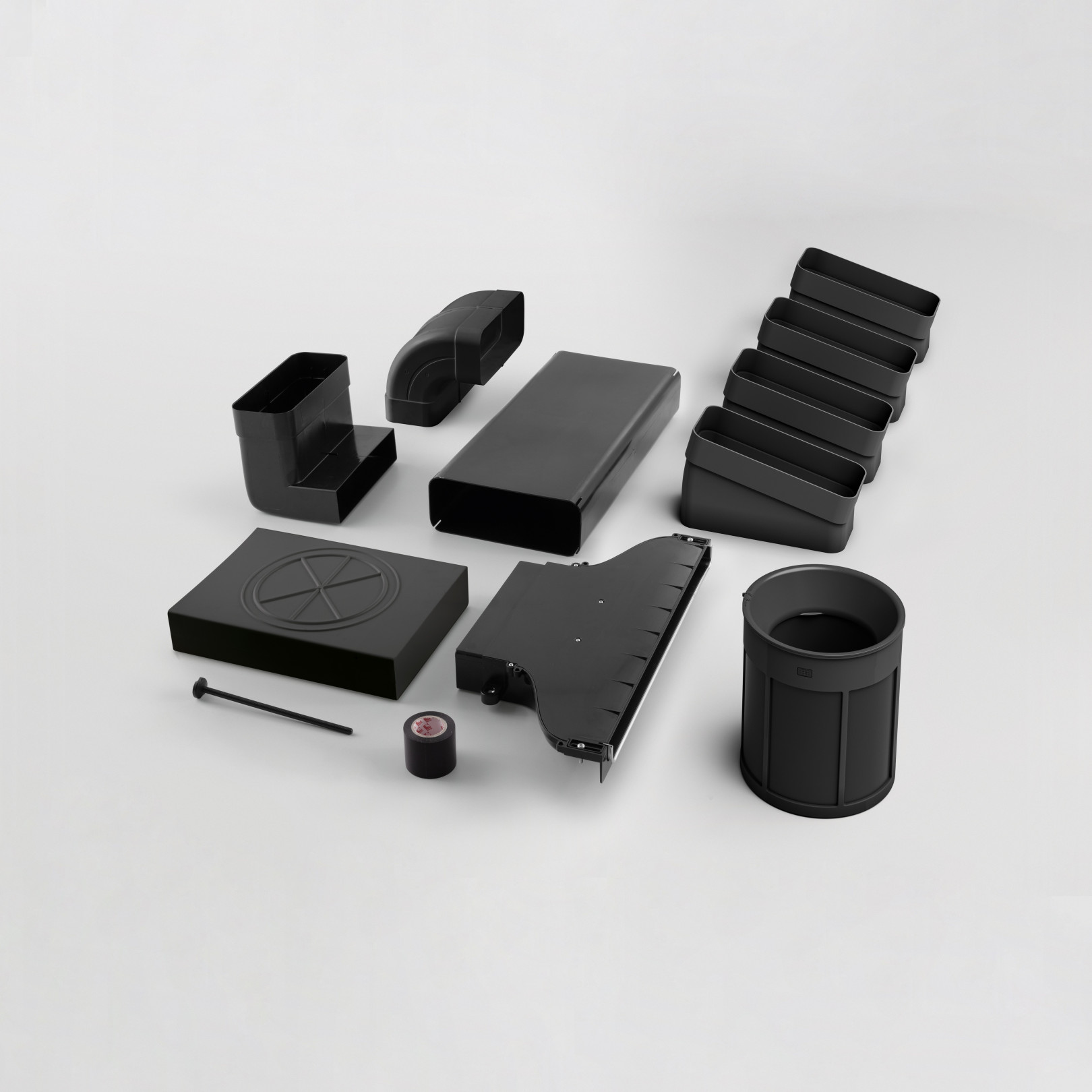 Sada obsahuje kombinovaný tukový a uhlíkový filtr EVO a potrubí zakončené výduchem před sokl.