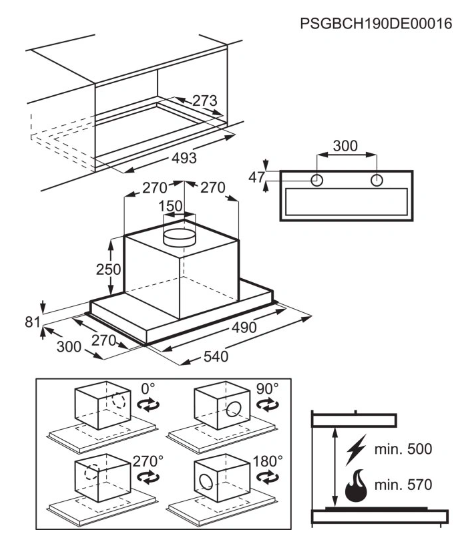 Funkce: Automatické propojení s varnou deskou, Hob2Hood, Recirkulace, S odtahem