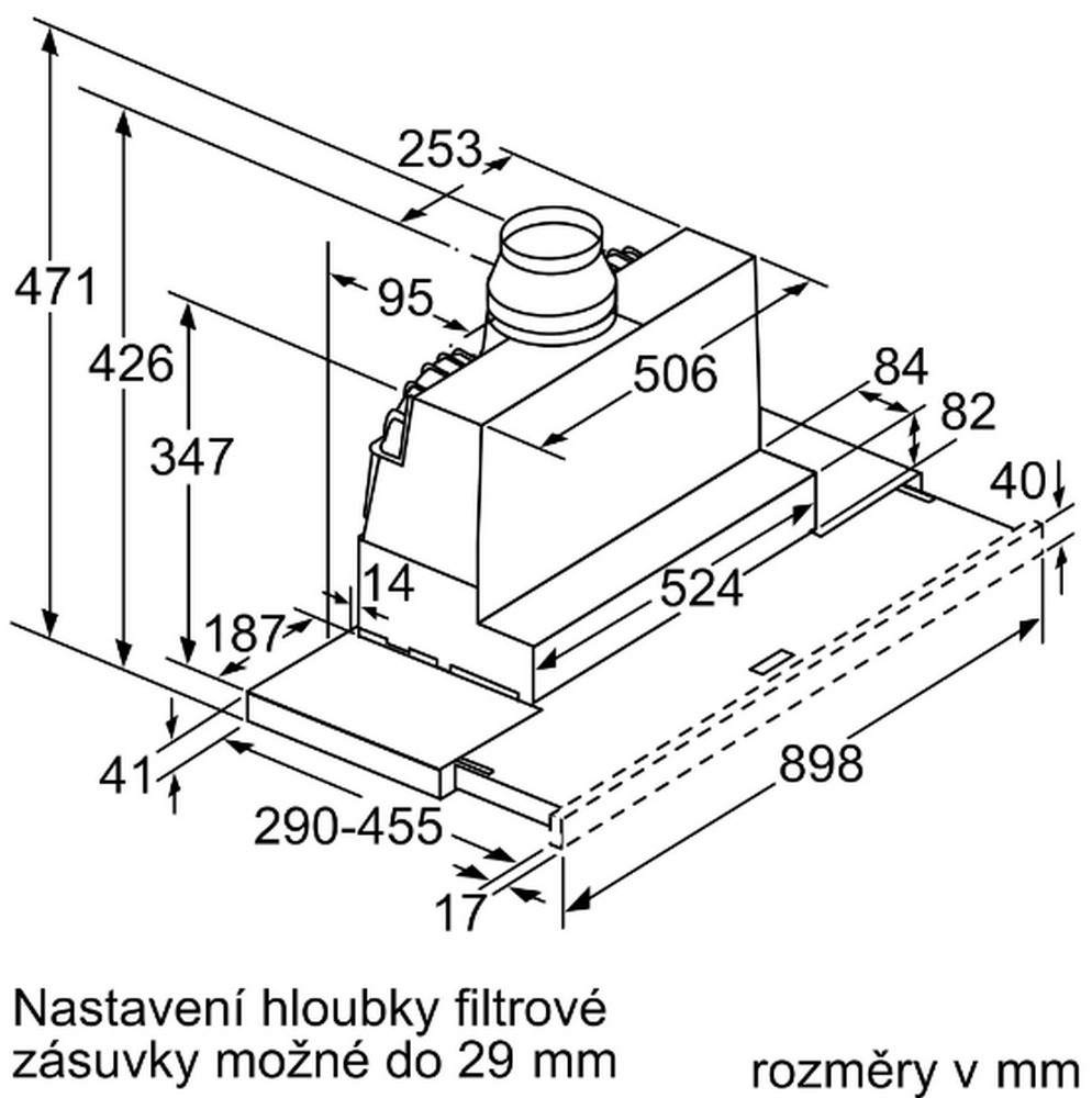 Teleskopický odsavač par: díky vestavění do nástěnné skříńky je stěží viditelný a nijak nenarušuje designovou linku kuchyňského prostoru.