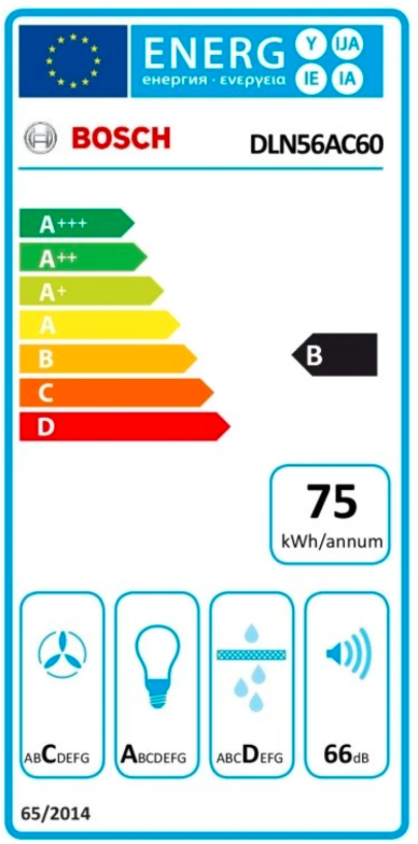 třída spotřeby energie: B* (na stupnici třídy energetické účinnosti od A+++ do D)