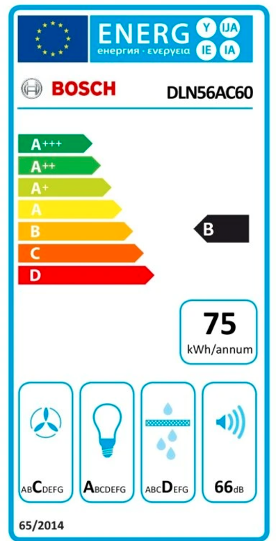 podle norem EN 61591 a EN/IEC 60704-2-13 může odsavač par při odtahu dosáhnout následujících hodnot: stupeň 1: výkon odsávání 295 m3/h; hlučnost 50 dB (A) re1pW stupeň 2: výkon odsávání 445 m3/h; hlučnost 59 dB (A) re1pW stupeň 3: výkon odsávání 570 m3/h; hlučnost 66 dB (A) re1pW intenzivní: výkon odsávání 645 m3/h; hlučnost 68 dB (A) re1pW