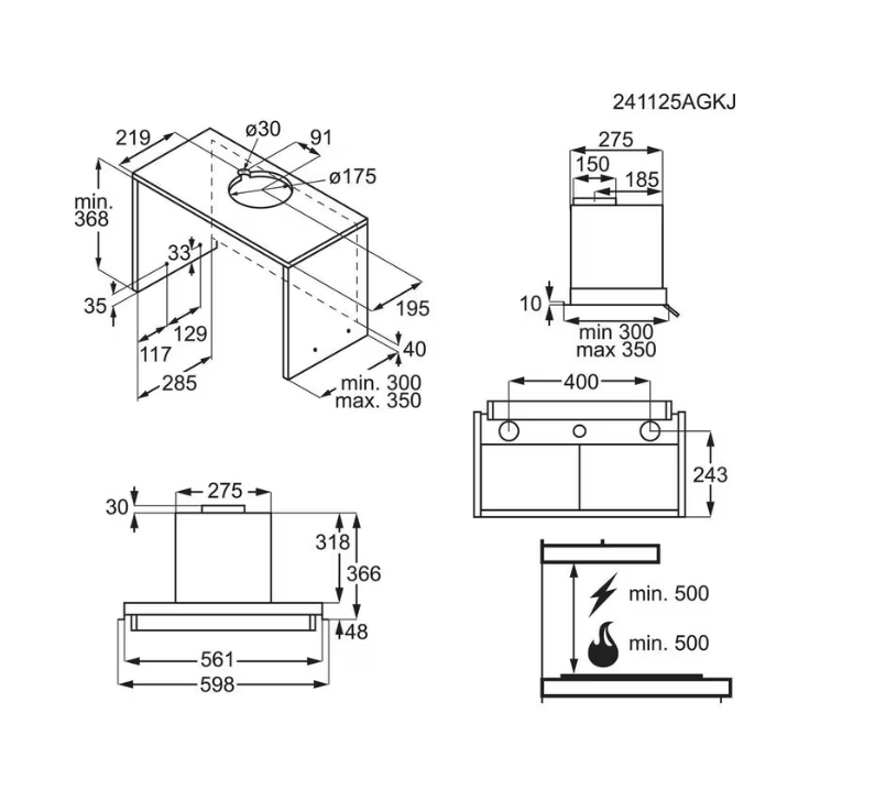 Typ odsavače: Výklopný, vestavba do skříňky, šířka 60 cm
