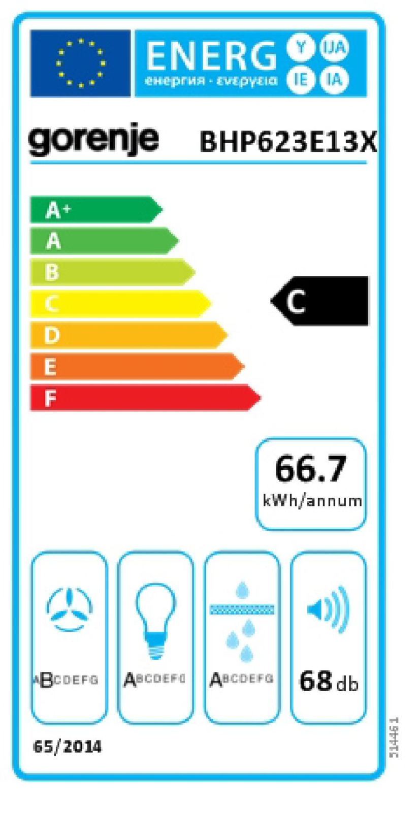 Roční spotřeba energie - AEC: 66,7 kWh/a