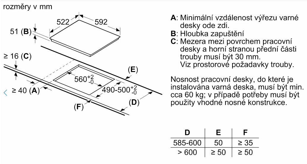 Výška pro vestavbu cm 5.1