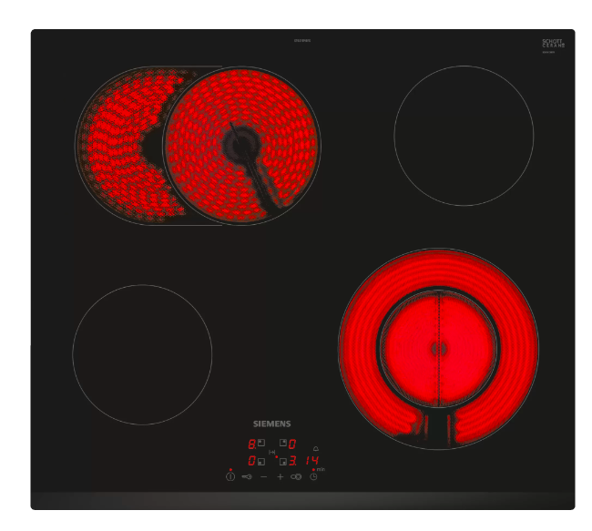 Místo i pro velké pánve a hrnce díky dvouokruhové varné zóně o průměru 21 cm.