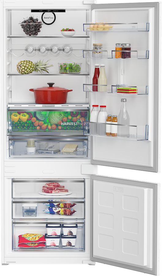 AeroFlow™ je šetrná cirkulace chladného vzduchu v prostoru lednice, která uchová jídlo déle čerstvé. Chladný vzduch o stálé teplotě obklopuje potraviny v celém prostoru lednice rovnoměrně a teplota mezi jednotlivými policemi se tak neliší jako běžně. Navíc vzduch nefouká přímo na potraviny, takže neosychají. Potraviny díky AeroFlow™ vydrží déle, uchovávají si svoji chuť i živiny.Typ        Vestavná