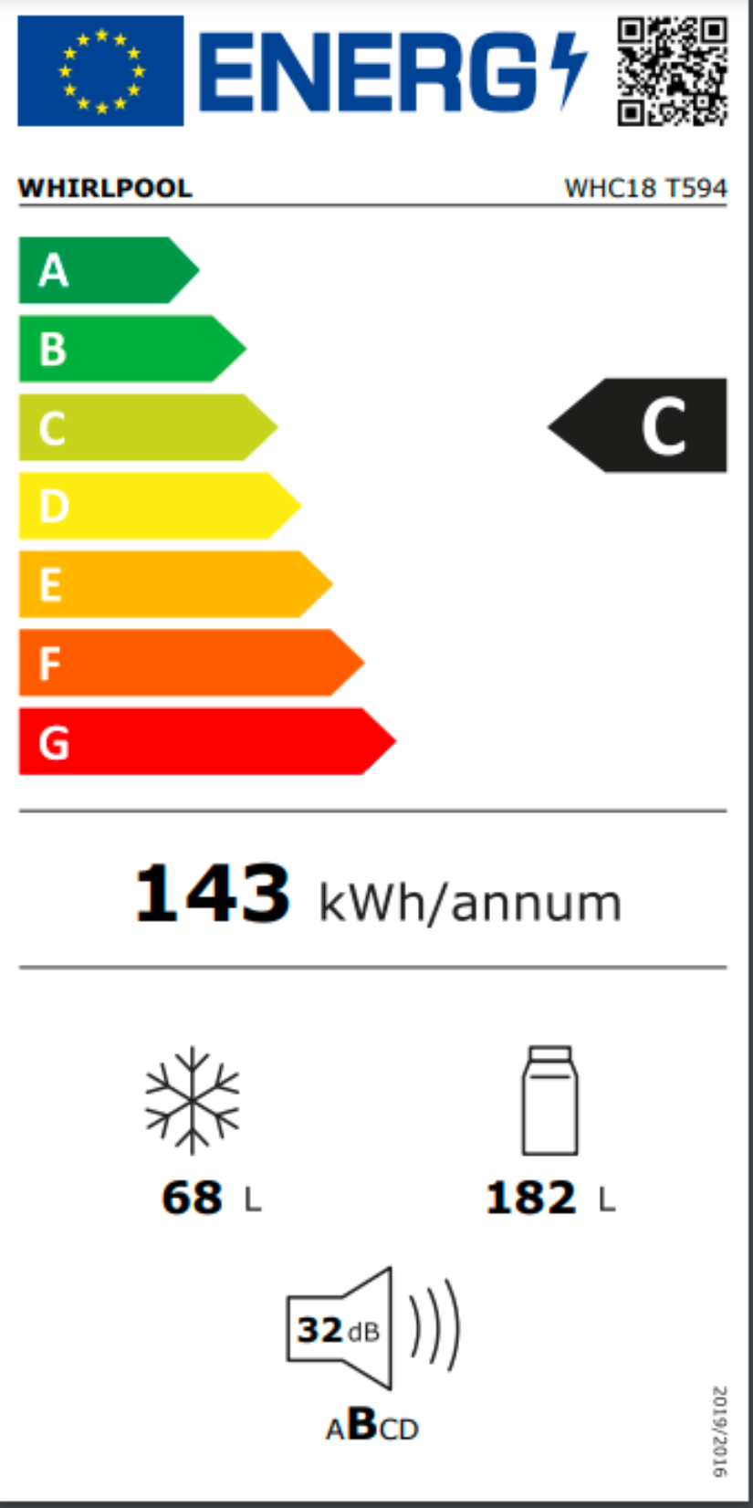 Ročná spotreba energie v kilowatthodinách za rok (kWh/rok) (EÚ) 2017/1369: 143