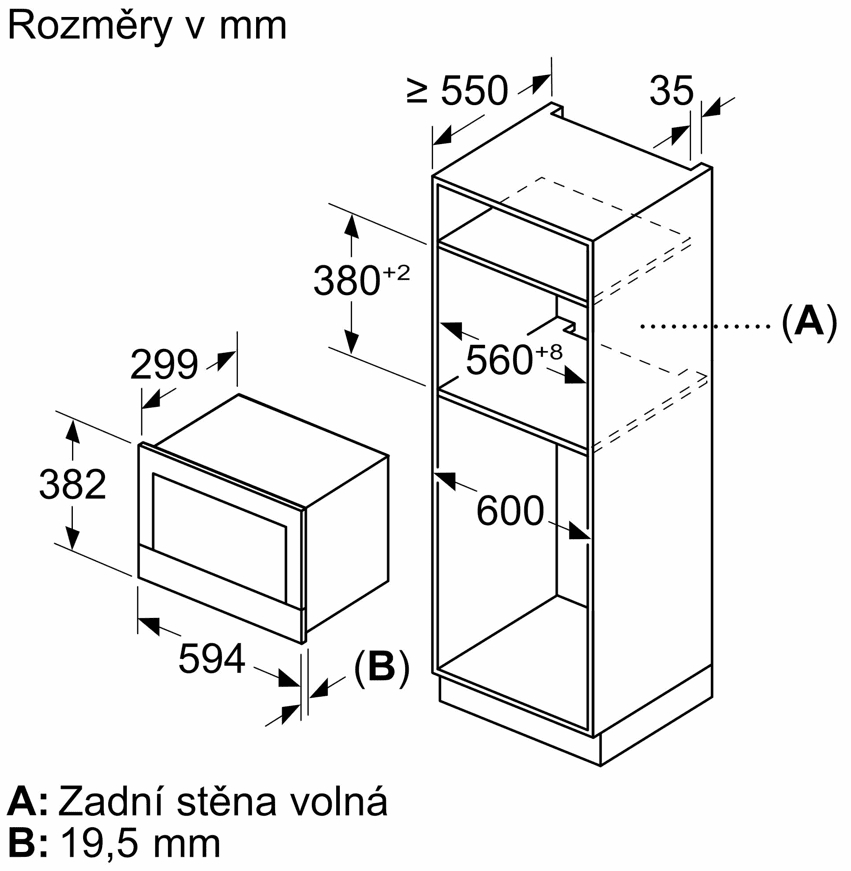vestavný spotřebič do horní skříňky o šířce 60 cm s hloubkou min. 30 cm, pro vestavbu do vysoké skříňky o šířce 60 cm
