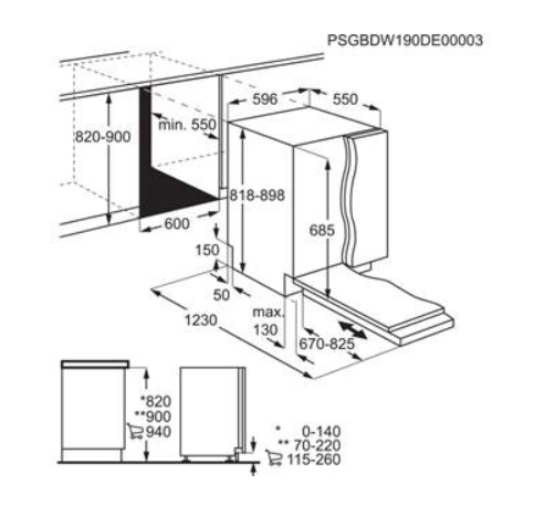 Vestavné rozměry V(min/max)xŠxH (mm): 820/900 x 600 x 570