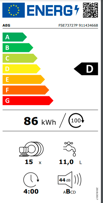 Kapacita mytí: 15: Podle normy IEC pro sadu nádobí. Jednou sadou nádobí je podle této normy: talíř, hluboký talíř, dezertní talíř, sklenice, čajový šálek s podšálkem, nůž, vidlička, polévková lžíce, dezertní lžíce a lžička.