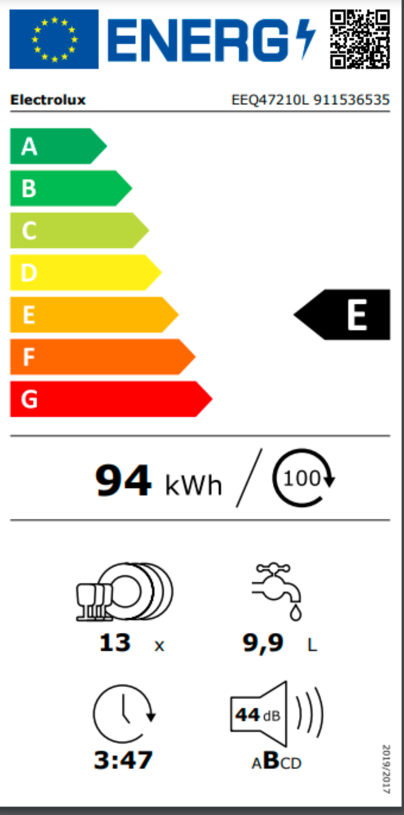 Kapacita mytí: 13: Podle normy IEC pro sadu nádobí. Jednou sadou nádobí je podle této normy: talíř, hluboký talíř, dezertní talíř, sklenice, čajový šálek s podšálkem, nůž, vidlička, polévková lžíce, dezertní lžíce a lžička.