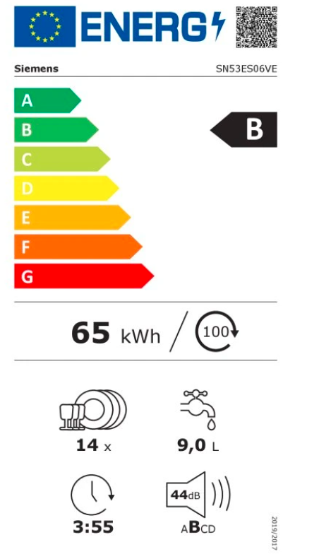 Výkon a spotřeba třída energetické účinnosti:¹ B energie² / voda³: 65 kWh / 9 l kapacita: 14 sad nádobí doba trvání programu:⁴ 3:55 h:min hladina hluku: 44 dB(A) re 1 pW třída ...Více informací