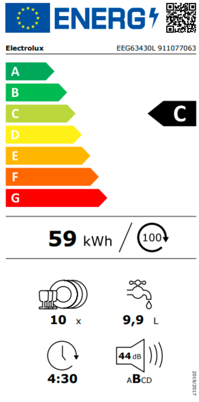 Spotřeba energie na 100 cyklů (kWh): 59