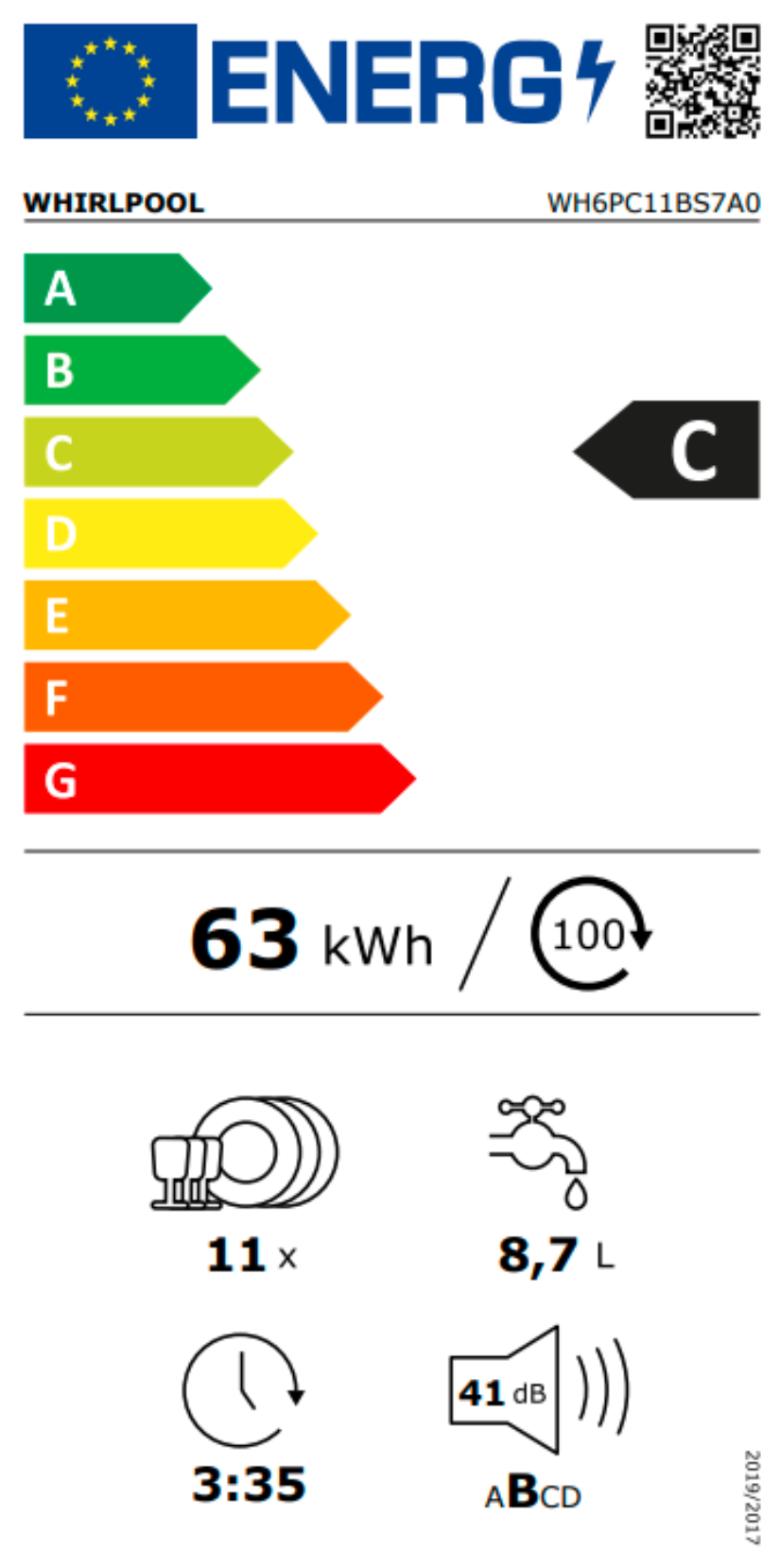 Spotřeba energie na 100 cyklů Eco Program (EU 2017/1369): 63