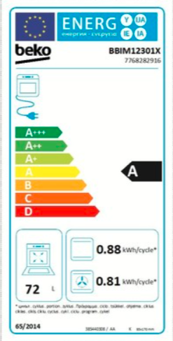 | Objem trouby L | 72 |
