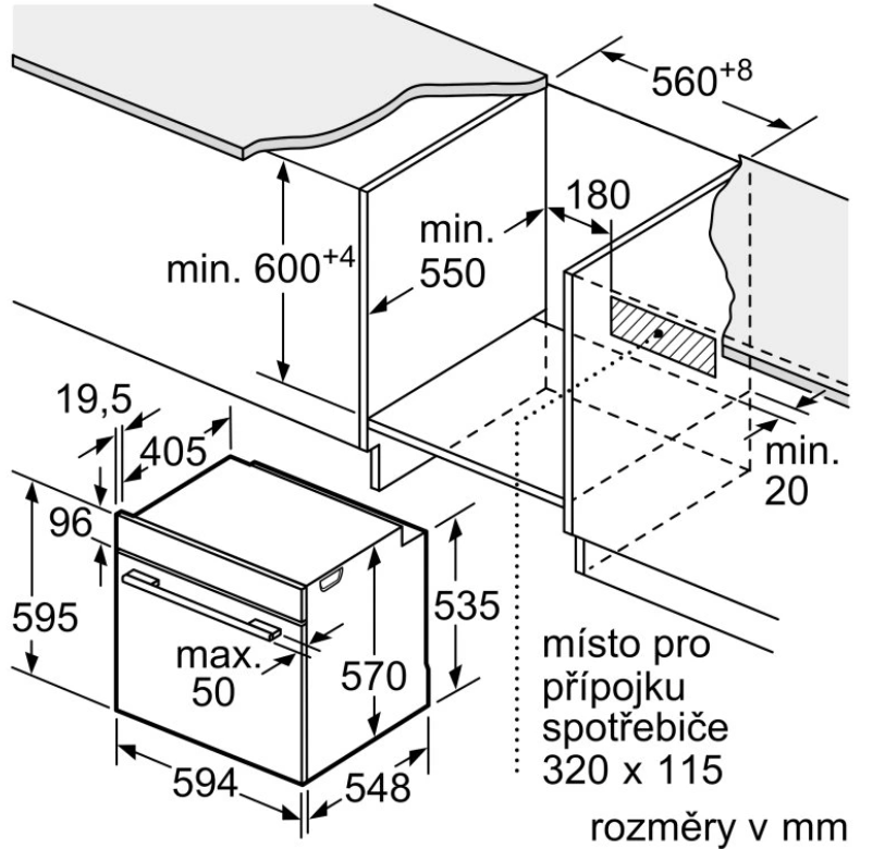 rozměry niky (V x Š x H): 585 mm - 595 mm x 560 mm - 568 mm x 550 mm