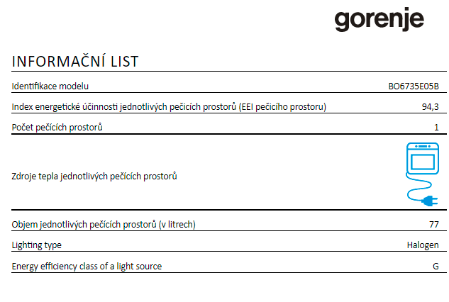 Spotřeba energie plynové trouby na jeden cyklus v konvenčním režimu (2010/30/ES) 0,0 Mj