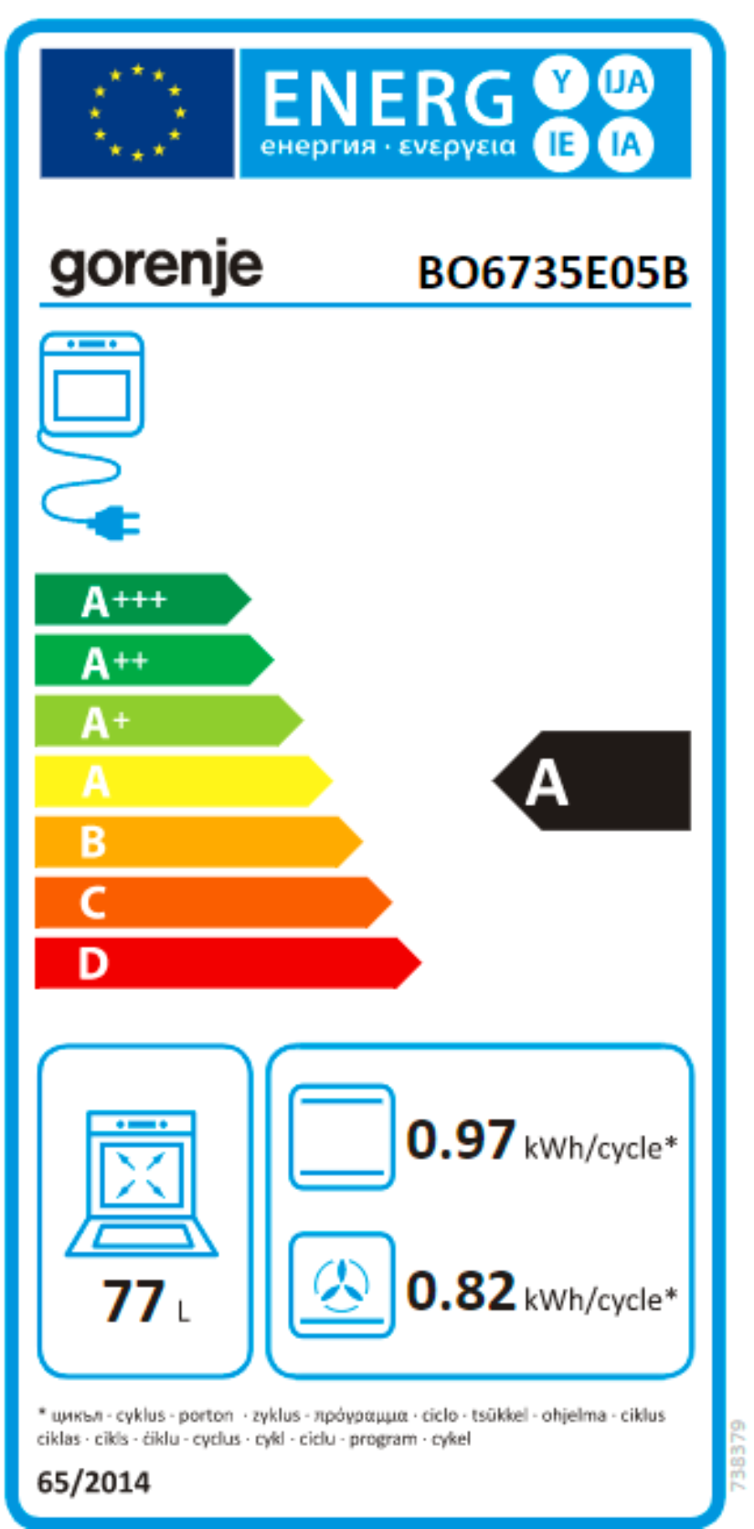 Spotřeba elektrické energie na jeden cyklus v režimu ventilátorové nucené konvekce (2010/30 / ES) 0,82 kWh/cycle