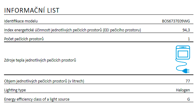 Spotřeba energie (nucená konvekce vzduchu) 0,82 kWh