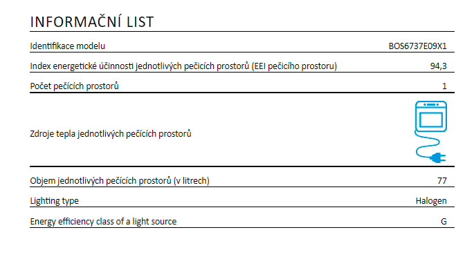 Spotřeba energie (nucená konvekce vzduchu) 0,82 kWh