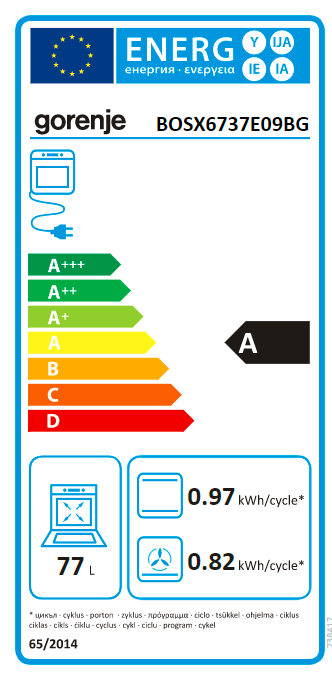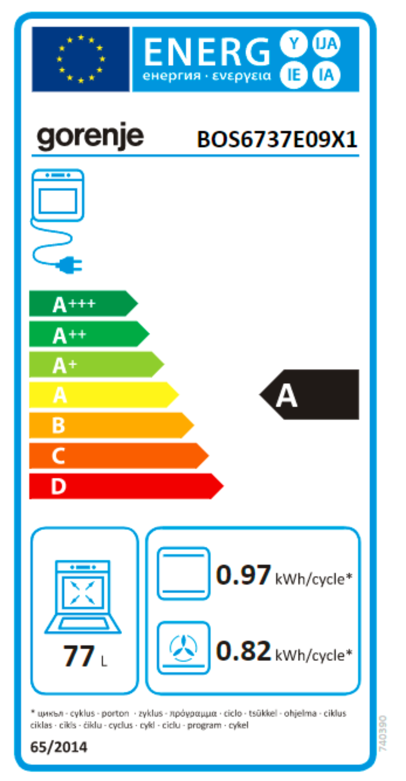 Spotřeba elektrické energie na jeden cyklus v režimu ventilátorové nucené konvekce (2010/30 / ES) 0,82 kWh/cycle