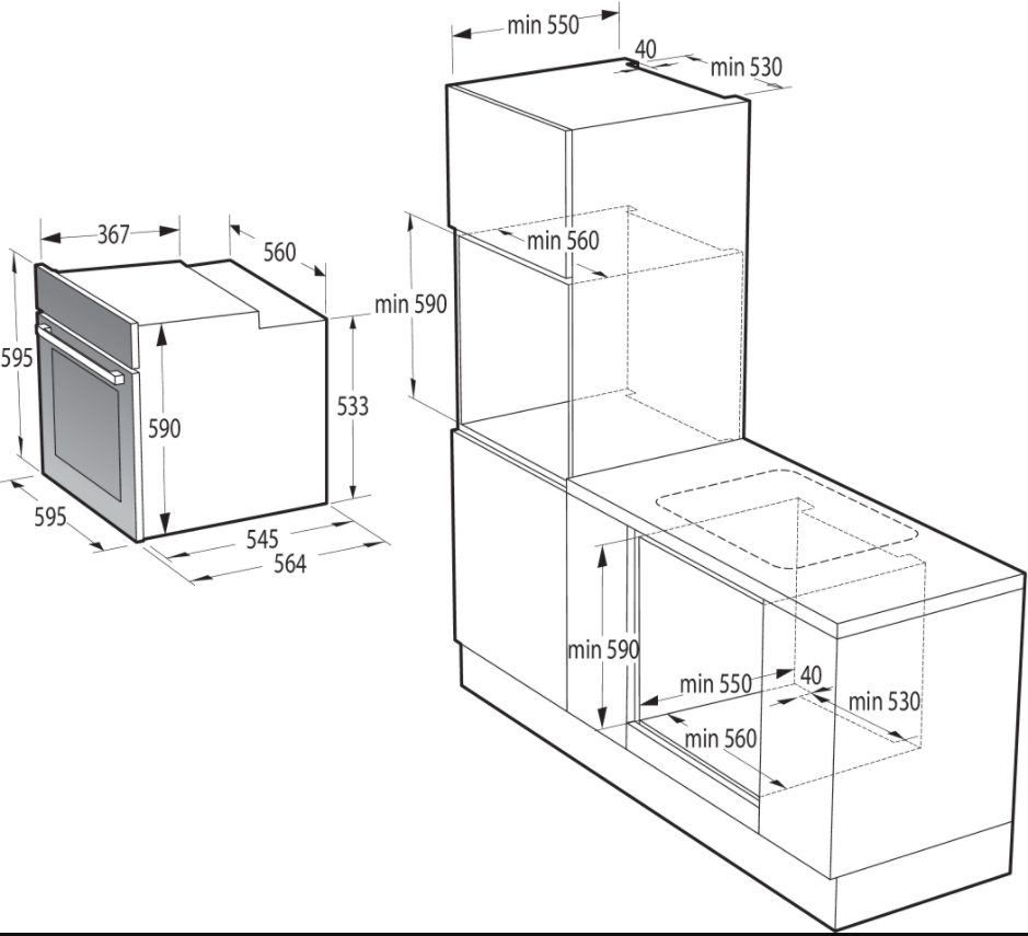 Minimální výška otvoru pro vestavění (mm) 590 mm