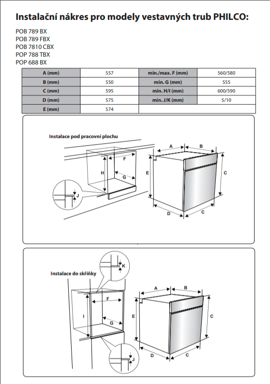 | Rozměry pro vestavbu | |