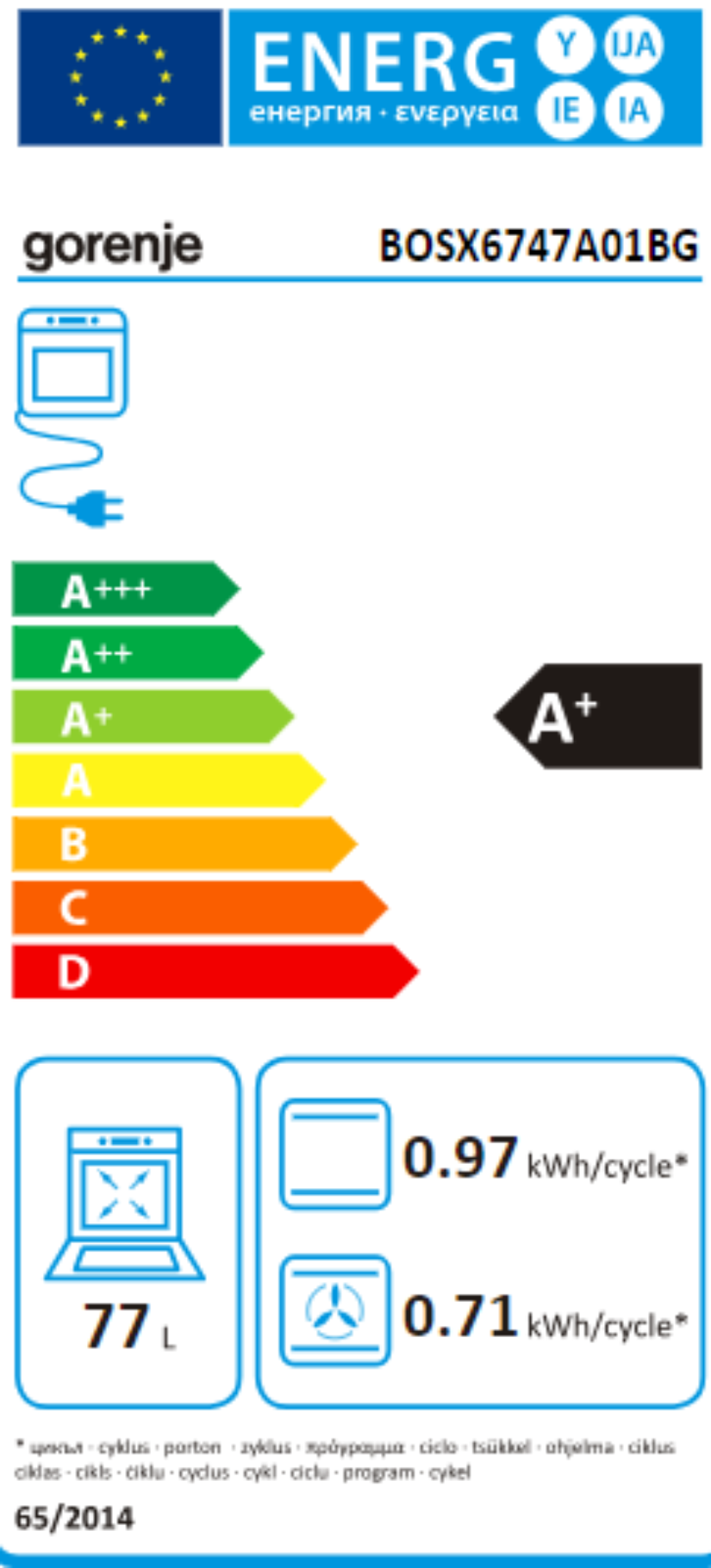 | Objem trouby L | 77 |