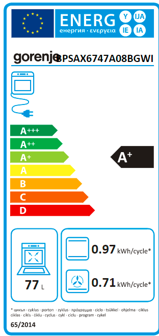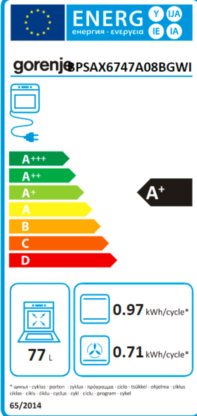 Spotřeba elektrické energie na jeden cyklus v režimu ventilátorové nucené konvekce (2010/30 / ES) 0,71 kWh/cycle