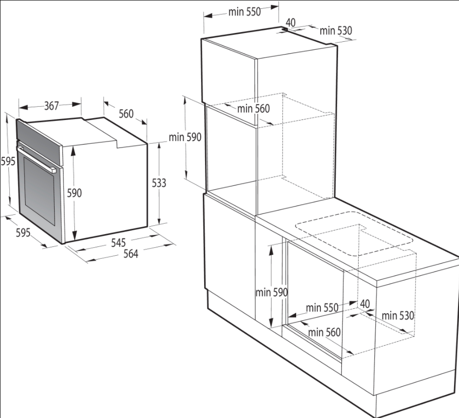 Minimální výška otvoru pro vestavění (mm) 590 mm