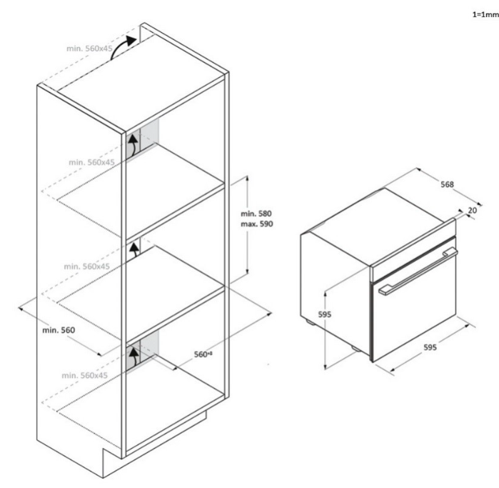 Rozměry výrobku V × Š × H (mm): 595 × 595 × 568